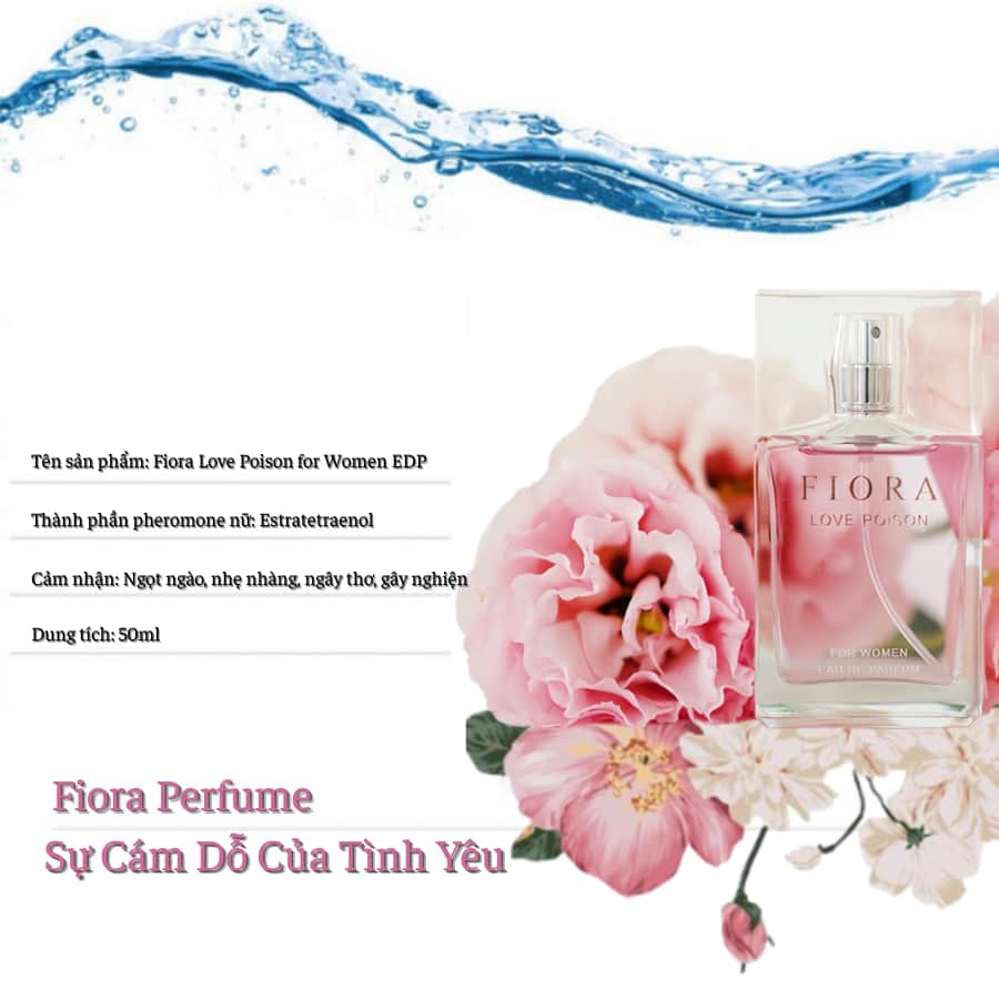 Nước hoa dành cho nữ của thương hiệu Fiora là loại nước hoa tình yêu – Tiêu biểu cho nghệ thuật quyến rũ, hấp dẫn ngay lần gặp đầu tiên. Sản phẩm là sự kết hợp chất pheromone (hay còn gọi là mùi hương hấp dẫn bạn tình) đậm đặc của con người với hương thơm tinh tế, sang trọng được chiết xuất từ những loài hoa thuộc thiên nhiên phong phú của Pháp – Mang đậm phong cách quý tộc Châu Âu.
