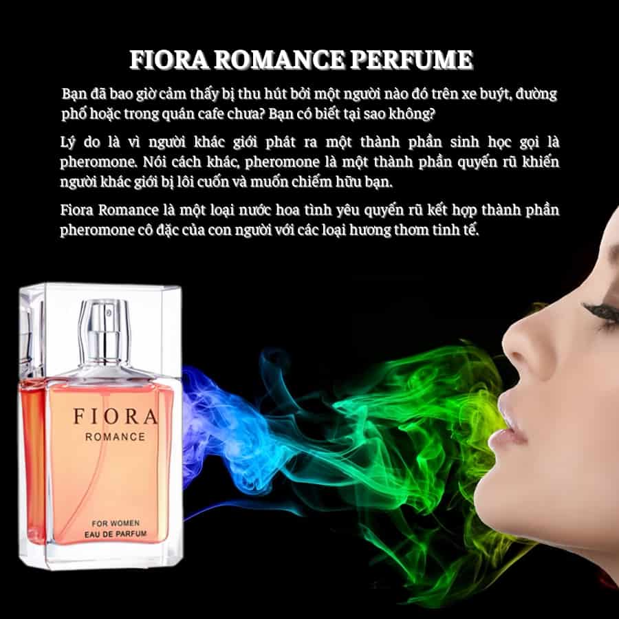 Pheromone là các hợp chất hóa học mà cơ thể tiết ra, được cho là có khả năng ảnh hưởng đến hành vi hoặc cảm xúc của người khác giới. Trong tự nhiên, pheromone đóng vai trò quan trọng trong việc thu hút bạn tình hoặc giao tiếp xã hội. Với con người, chất estratetraenol – một loại pheromone được sử dụng trong Fiora Romance, được nghiên cứu có thể tác động đến tâm trạng và sự hấp dẫn. Fiora Romance tích hợp pheromone đậm đặc (200PPM) để tạo nên một mùi hương không chỉ quyến rũ mà còn tăng cường sự tự tin cho người dùng.