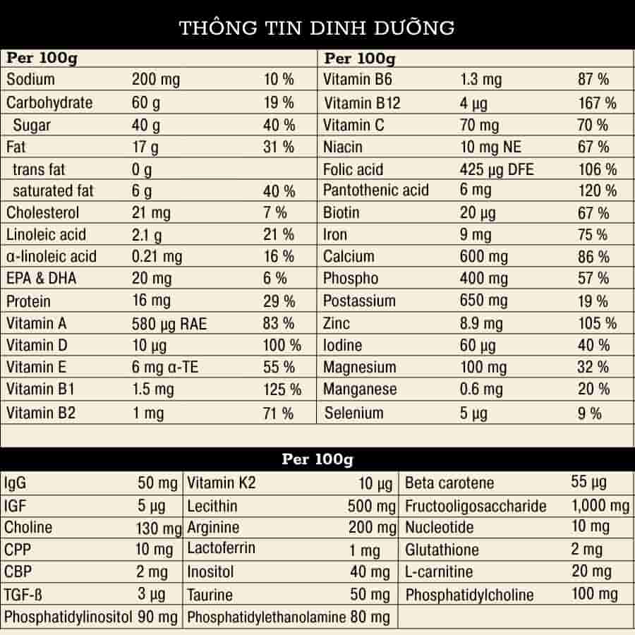 Thành phần: DHA, Protein sữa non, Vitamin & khoáng chất,…
